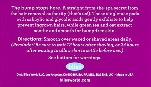 Bliss Bump Attendant, Ingrown Hair Eliminating Pads | Use Between Waxing/Shaving Sessions | Paraben Free, Cruelty Free | 25 Pads