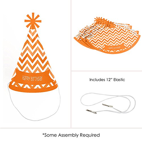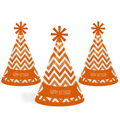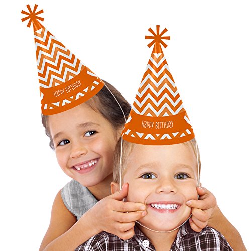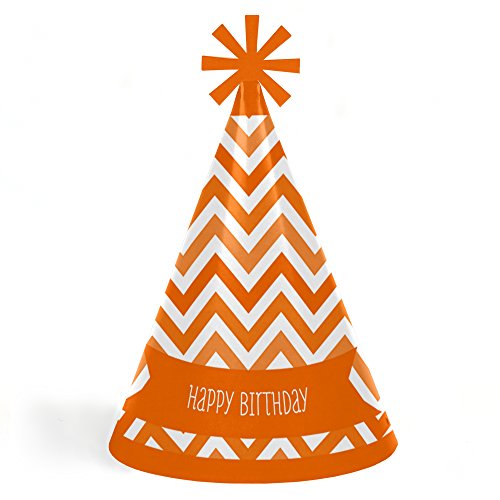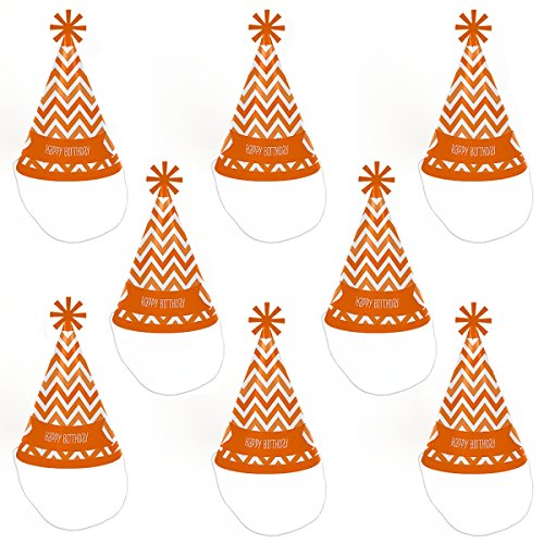 Chevron Orange - Cone Happy Birthday Party Hats for Kids and Adults - Set of 8 (Standard Size)