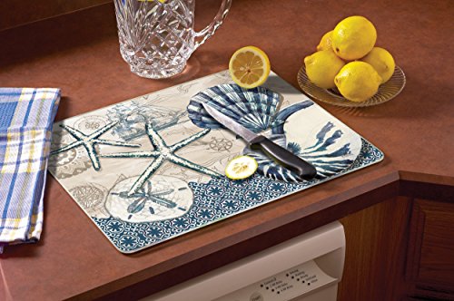 CounterArt Tide Pool Shells Glass Cutting Board, 15" x 12"