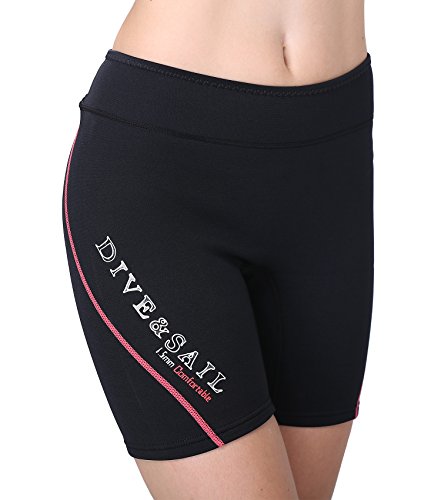 DIVE & SAIL Wetsuit Shorts 1.5mm Women Neoprene Pant Keep Warm for Kayak Dive Snorkeling Paddling (Red & Black, 12)