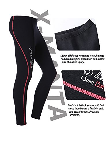 Dive & Sail Wetsuit Pants 1.5mm Women Neoprene Pants For Kayaking Surfing Snorkeling Padding (Red & Black, 4)