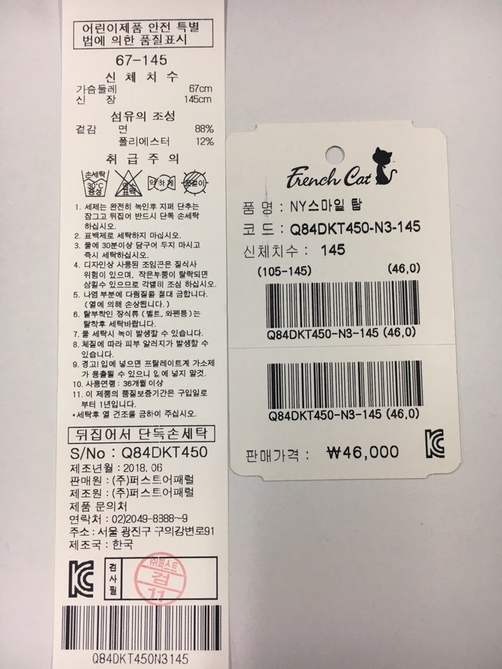 제조자 : 퍼스트어패럴