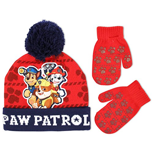 -. Title : Nickelodeon Toddler Boys' Paw Patrol Chase Cotton Baseball Cap, Red/Blue Beanie/Mittens Set, Age 2-5