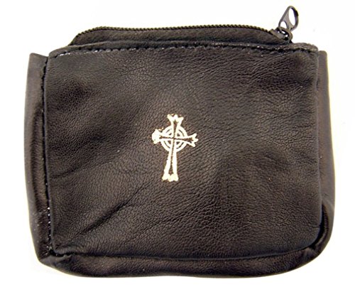 Sheepskin Leather Rosary Case on Keyring Keychain, Black, 4 1/4 Inch