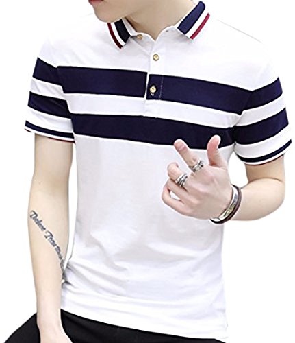 원본상품명: (L, ホワイト)3色 M L ポロシャツ メンズ 半袖 スポ?ツ 綿 コットン ライン ゴルフ 白 グレ? ネイビ? 紺 ホワイト ネイビ? (フル?ルアンフェ)FleurUneffe