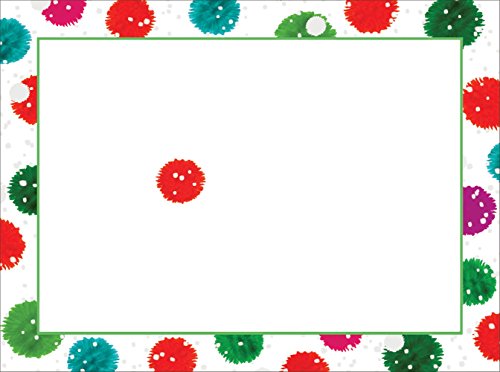 Entertaining with Caspari Snowy Pom Poms with Ivroy Foil Christmas Photo Cards, Pack of 10