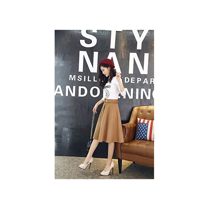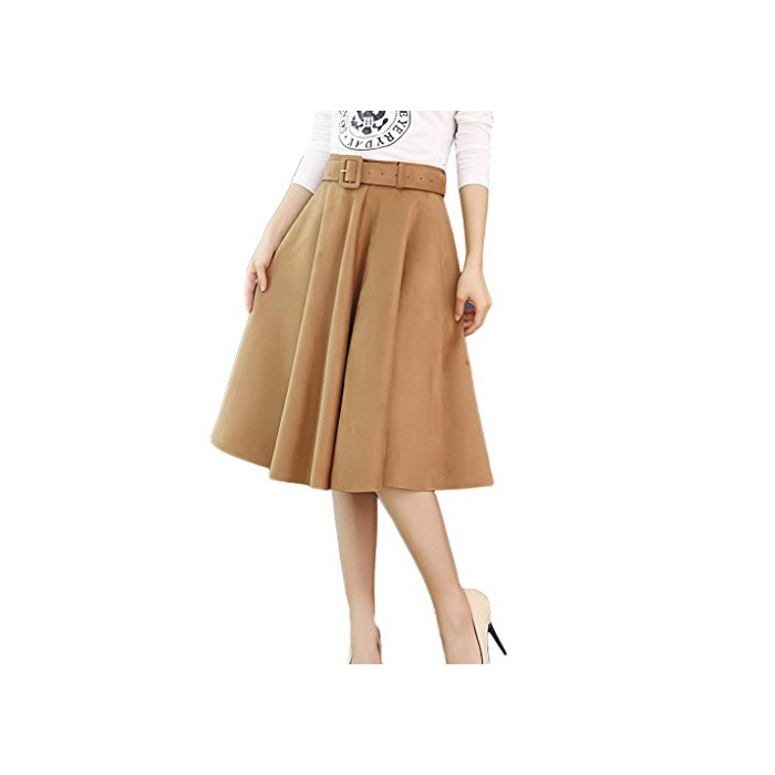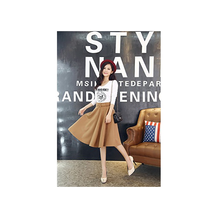 원본상품명: (ビグッド)Bigood ミディアム丈 スカ?トレディ?ス フレアスカ?トミモレ丈 膝丈 無地 Aライン 秋 冬 プリ?ツ ハイウエスト 共布ベルト付き 二次? フォ?マル コ?ヒ? L