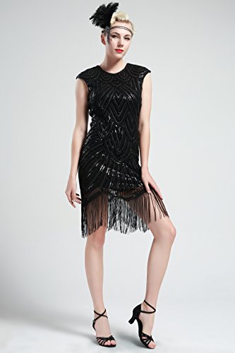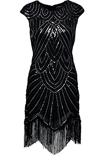 Materials: Polyester, Beaded & Sequins. Length: Below the knee; Fastening: Zip. Flapper dress long, flapper dresses with sleeves or without and flapper dress plus size are all available in our store.