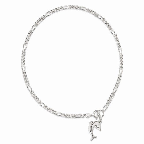 -. Title : 925 Sterling Silver 10inch Hollow Polished 3-Dimensional Dolphin Anklet Bracelet