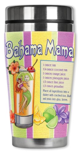 Mugzie Striped Bahama Mama Travel Mug with Insulated Wetsuit Cover, 16 oz, Black