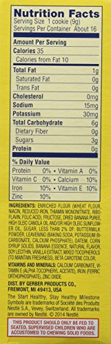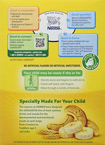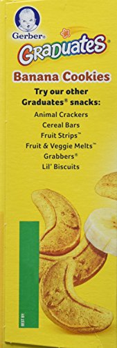 -. Binding : Misc. -. Brand : Gerber -. EAN : 0015000005504 -. Feature : 3 - 5oz. Boxes of BANANA COOKIES by Gerber / These cookies are baked with real bananas. / Good source of Vitamin E, Iron, Zinc & Calcium. / Graduate Banana Cookies are a great way to make every bite count - designed just right for toddlers. / Perfect for a child learning to hold & chew. -. PackageQuantity : 3 -. ProductGroup : Grocery -. ProductTypeName : GROCERY -. Title : Gerber Graduates BANANA COOKIES 5oz. (Pack of 3) -. UPC : 015000005504