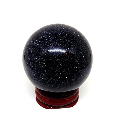 NSCTrading 50mm Blue Gold Stone Goldstone Crystal Gemstone Sphere with Stand