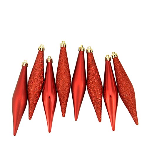 Northlight 31730668 8 Count Red Hot Shatterproof 4-Finish Finial Drop Christmas Ornaments, 6"