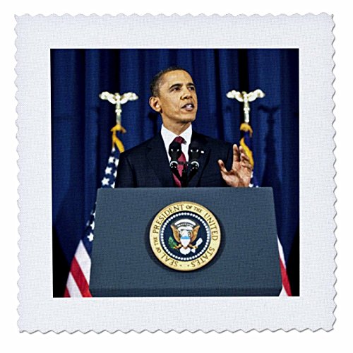 3dRose qs_43694_3 President Obama Gives National Speech-Quilt Square, 8 by 8-Inch