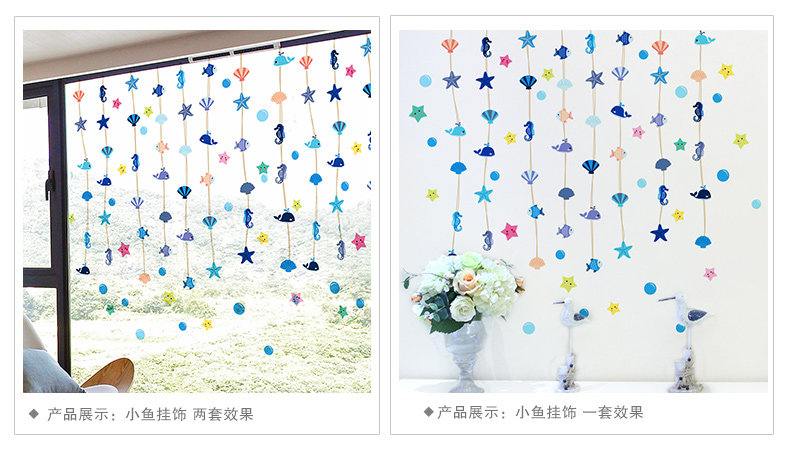 墙贴纸贴画浴室卫生间玻璃瓷砖装饰海洋风格挂帘珠帘贝壳动物泡泡