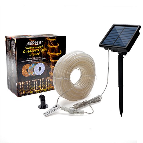 Solar Lights, AGPtEK 13m/42.6FT 100LED Curtain Lights for Indoor/Outdoor Decorations/Garden/Patio/Party - 2400mah High Capacity Battery - 8 Modes - Warm White