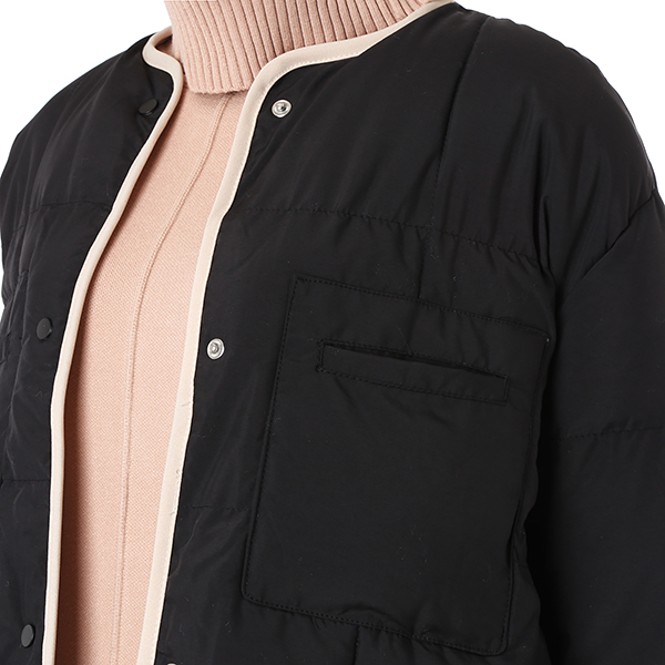 심플한 노카라이며 모던 베이직한 따뜻한 패딩 자켓입니다.