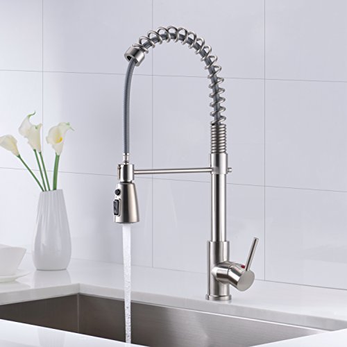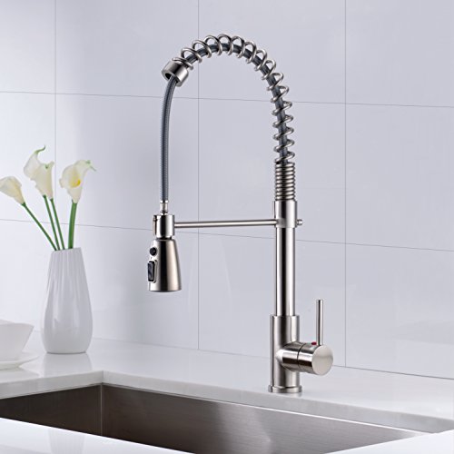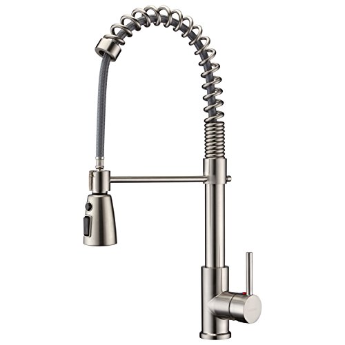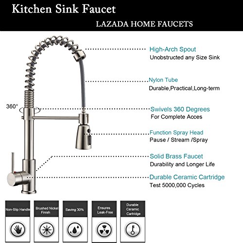LAZADA High Arc Stainless Steel Commercial Style Coiled Spring Kitchen Faucet, Brushed Nickel Pull Down Faucet with Pause Function Sprayer