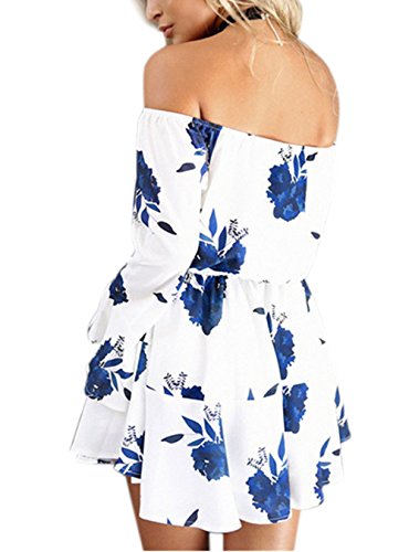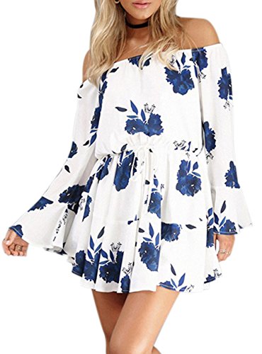 Features: Vintage Floral Print/ Sexy Off Shoulder Strapless/ Slash Neck/ Flare Sleeve/ Lace Up Wasit/ Above Knee Short Dress