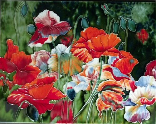 Continental Art Center HD 035 Poppy Flower Field Art Tile, 11 by 14-Inch