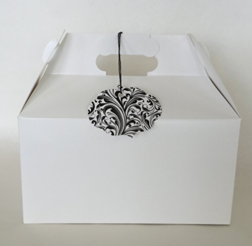(Rustic Pearl Collection)/Stationery Party Supplies/Gift Wrapping Supplies/DIRECT FROM USA/White Gable Boxes, Large 9.5 x 5 x 5 Size, with Gift Tags - Set of 6 (Black Damask Tags)