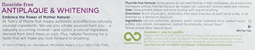 Studio : Tom's of Maine Publisher : Tom's of Maine Binding : Health and Beauty Product Description At Tom's of Maine that means we use authentic natural ingredients. We use zinc citrate sourced from zinc, a naturally occurring mineral and xylitol, a natural ingredient derived from birch trees or corn. Plus, natural flavoring for a taste that will make you look forward to brushing. Some people do not want fluoride in their toothpaste. We produce this toothpaste without fluoride because we respect our customers diverse needs and interests. 0