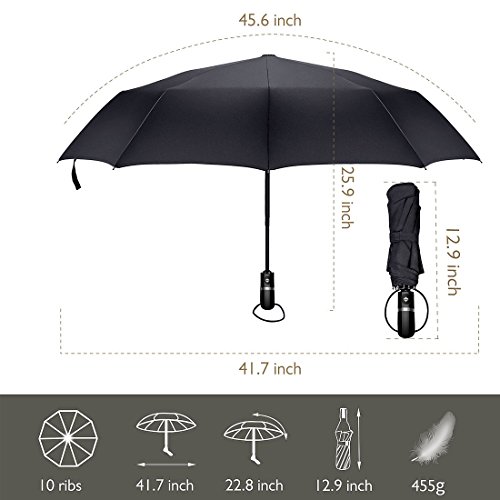 -. Title : Travel Umbrella - Sturdy Wind Resistant Umbrellas with 10 Ribs - Reverse Compact Folding Umbrella - Auto Open Close, Lightweight for Men/Women…