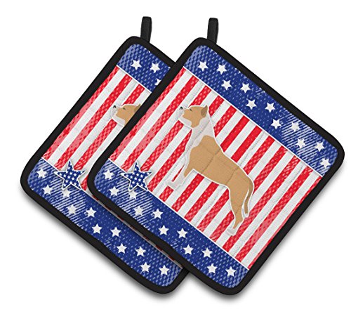 Caroline's Treasures USA Patriotic Staffordshire Bull Terrier Pair of Pot Holders BB3354PTHD, 7.5HX7.5W, Multicolor