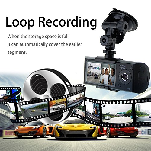 -. Feature : Dual cameras, bringing convenience for you to take video at front and back at the same time. / Newly added GPS module can record the whole driving track. Using random specialized software, you can see the video at computer, at the same time connect google map through the internet, driving track shows on the map and you can trace the running route of the vehicle. / Built-in gravity sensor G-sensor can record the gravity sensing information. Using random specialized software, you can see the video at computer, at the same time read the gravity sensing data to trace accident and abnormal circumstance occurred in the running process. / Automatic cycle video recording. / Built-in lithium battery with charging and meanwhile recording function.