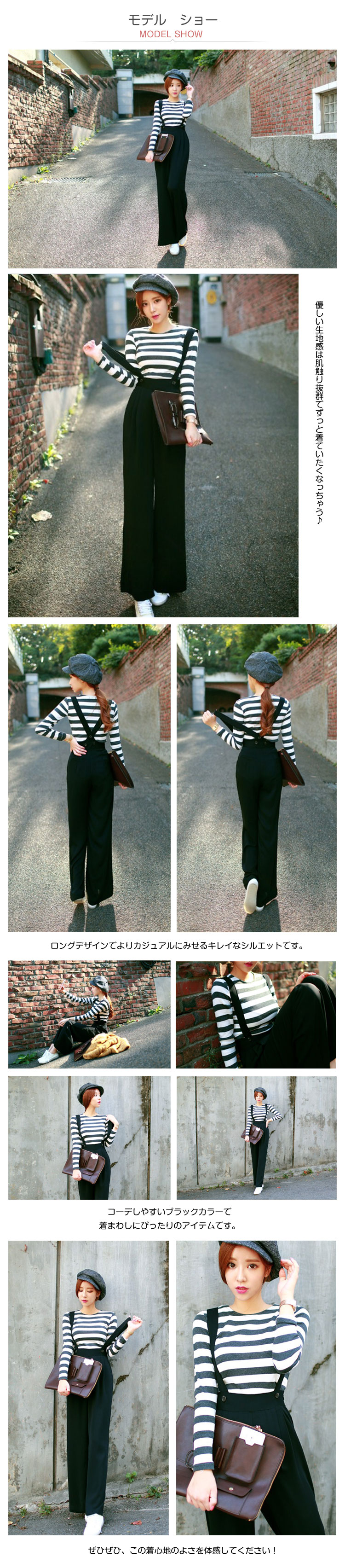 | リラックスした表情でカジュアルに着こなせるのに女性らしいスタイルにしてくれるサロペット。コーデしやすいブラックカラーで着まわしにぴったりのアイテムです。優しい生地感は肌触り抜群でずっと着ていたくなっちゃう? ロングデザインでよりカジュアルにみせるキレイなシルエットです。ぜひぜひ、この着心地のよさを体感してください! | |