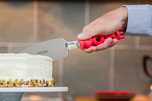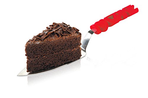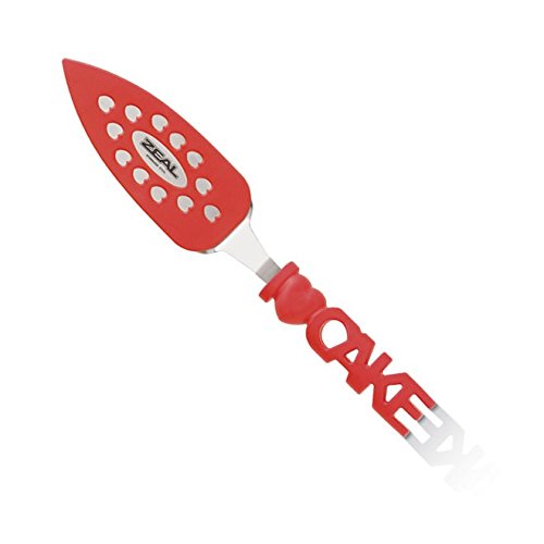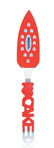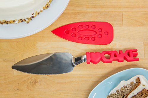 ZEAL Cake Slicer and Server with Cover - Serrated Cutter - I LOVE CAKE Design - For Cutting Cakes, Quiches, Pies - Red
