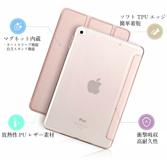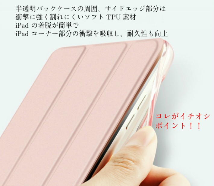 2.さらにやさしく!ソフトTPUサイドエッジで耐久性向上:半透明バックケースの周囲、端部分は、柔らかいソフトTPU素材なので、iPadをやさしく包み込み、iPadコーナー部分の衝撃を吸収するだけでなく、今までよりも耐久性が向上し長くお使いいただけます。