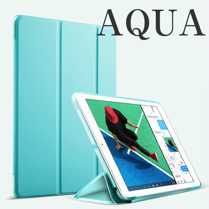 スマートカバーPUレザー保護カバー/半透明バックケース/一体式/軽量・極薄SoftサイドエッジタイプAQUA