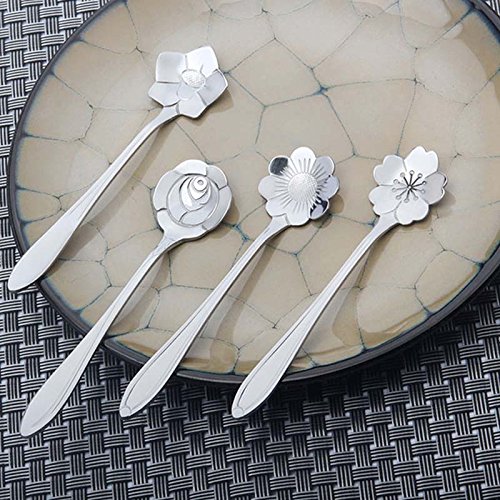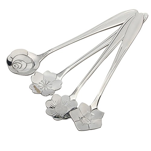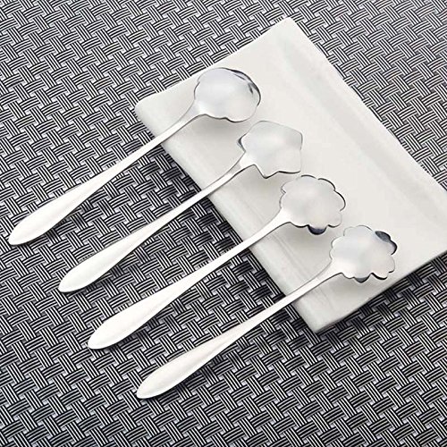 Verdental Creative Stainless Steel Coffee Spoon Tea Spoon Dessert Spoon Mixing Spoon Ice Cream Spoons Set of 4 (Silver)