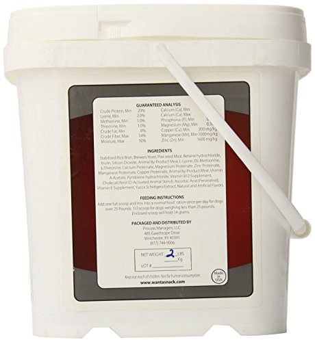 Want A Snack incorporates five unique organic mineral complexes. Each of these can be fed without the fear of creating mineral imbalances unlike the challenges faced when feeding inorganic compound. Each has been tested for stability and digestibilty. Our unique complex provides your animal with a wonderful blend of glucosamine, glucuron acid and chondroitin sulfate and is formulated in a stabilized rice bran base. Top dress normal feed ration. Dogs 10-25-pound, one half teaspoon per day. Dogs 25-pound and over one full teaspoon per day. Manufacured in small batches to enure freshness. For dogs of all ages.Feature