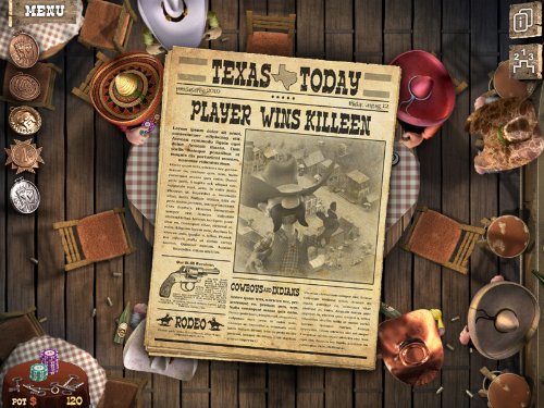 Learn how to play the best poker with the poker-tutorial. Play all new tournaments up to 120 opponents in 19 cities and 27 poker locations. You can choose to play all new poker tournaments, including a bounty hunter game, where you win cash prices when eliminating an opponent or play against a whole team of players! Organize your own tournaments, get loans at the bank. Travel by train, river casino boat or stage coach and play another game while travelling. Claim your transport and special locations like oilfields and mines. Buy the hats that suit you best or to get admitted to new locations. Judge your opponents based on new emotions, including nervous, on fire, steamy and tilt. Finally defeat the 9 best Notorious players to reclaim your title!
