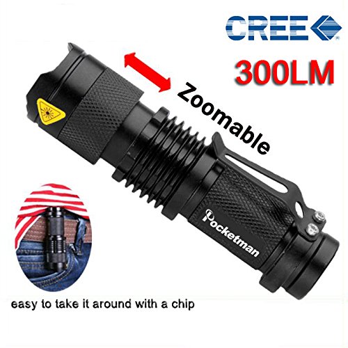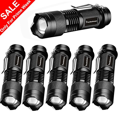 6 Pack,Pocketman 7W 300LM SK-68 3 Modes Mini Cree Black Q5 LED Tactical Flashlight