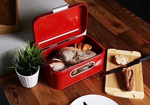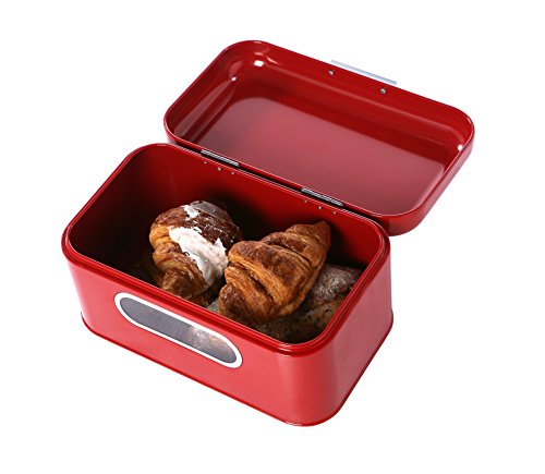 Title : Bread Box for Kitchen Countertop - Bread Bin Storage Container with Lid for Loaves, Pastries, and More 12 x 7.25 x 6.25 Inches, Red