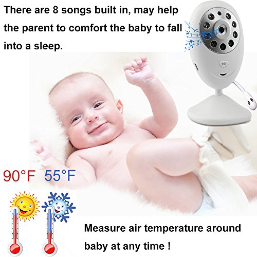 Why you need this baby monitor? With this YANX baby monitor, parents can see their children when they are doing housework in other rooms, kitchen, and yard, and no need to worry their baby. This monitor is also suitable in school, kindergarten, hospital, and also nursing home. Two Way Audio Talk: From the display, you can see your baby at anytime, so when your baby is crying, you can hear it immediately, and talk back first to soothe your baby. Baby can talk to you at anytime without pressing any button, while when you want to talk back to baby, you need to press the button. Monitoring Baby's Room Temperature: It is very convenient for you to pay attention to the temperature in baby's room, and make sure baby feel comfortable all the time. Always provide baby the most healthy environment. Music Playing Function: This baby monitor has the build-in music, so when baby is going to sleep, you can play the music (Support remote control) for your baby. Night Vision Function: This Night Vision function enables you to keep an eye on your baby all night in your bedroom, you will no need to go to baby's room, which may wake up your baby. Specification: Display: 2.4 " LCD Area of use: 160 feet / 50m indoor / 984ft / 300m outdoors Battery: Built-in Li-Polymer / 500mAh Power supply: 5V / 550mA DC Image Sensor: CMOS 0.3 Mega Night Vision Distance: 26FT / 8m Viewing Angle: 65 °? 0