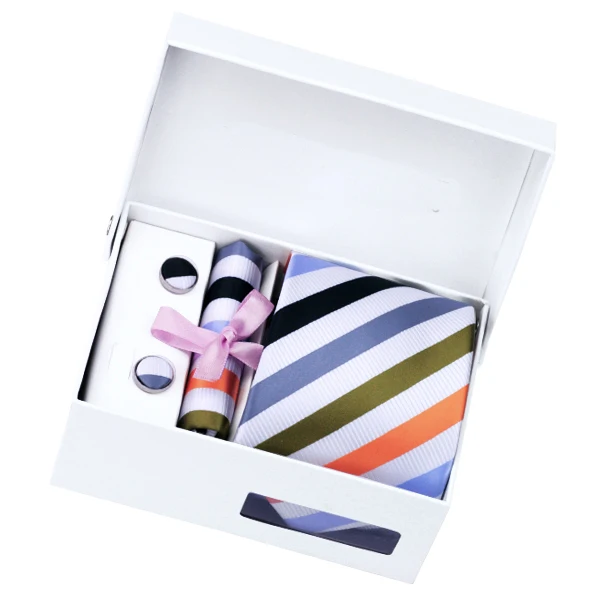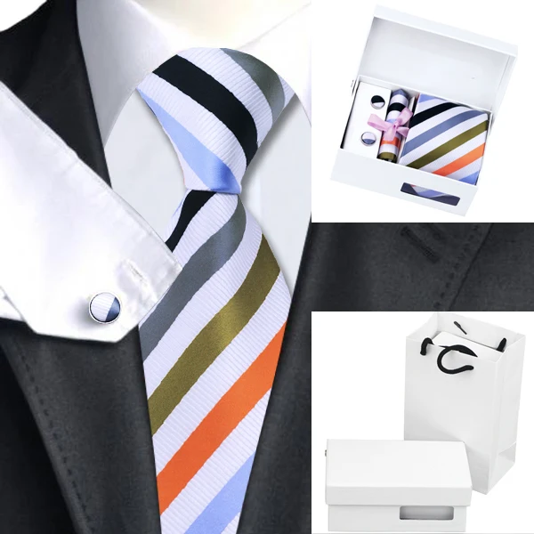 상품 내용 ![]() HN-1090 화이트 오렌지 블랙 참신 넥타이 손수건 커프스 선물 상자 가방 세트 남성 100% 실크 넥타이 웨딩 파티 신랑