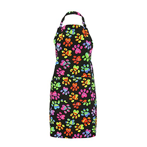 Colorful Paw Print Pet Lovers Kitchen Apron with Pockets