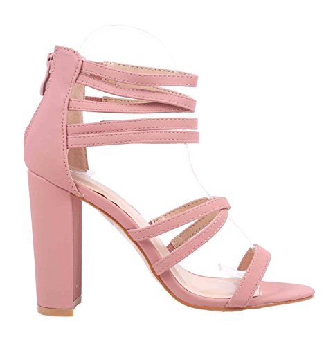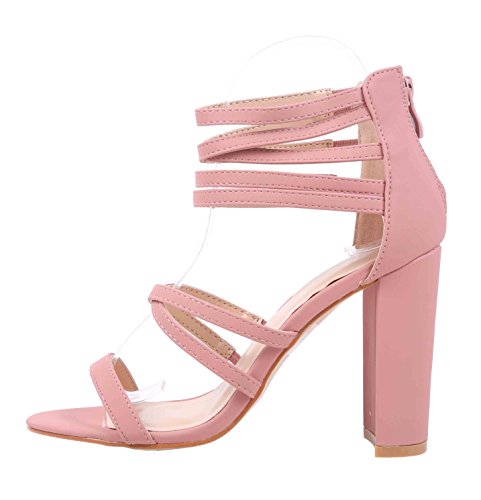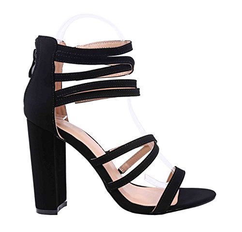 Sweet eCom Women High Heels Sandals Extendable Strappy Open Toe Chunky Heels Zipper Closure Fau...