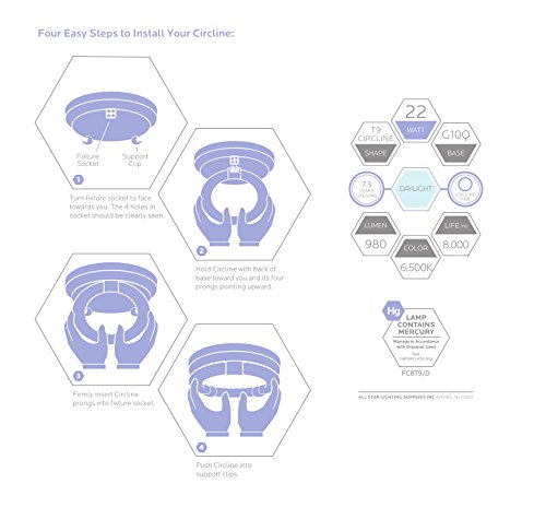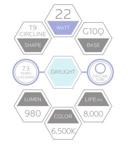 Luxrite LR20575 (2-Pack) FC8T9/D 22-Watt 8 INCH T9 Fluorescent Circular Light Bulb, Daylight 6500K, 980 Lumens, G10Q 4-Pin Base