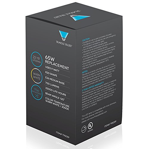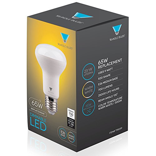 Triangle Bulbs T95059-6 (6 pack) 9 Watt (65-Watt Replacement) R20 Indoor Flood LED Light Bulb, Soft white (3000K), 700 Lumens, Dimmable, 6-Pack