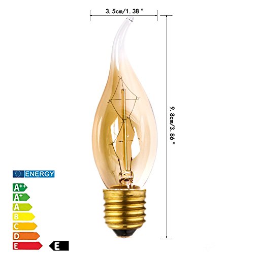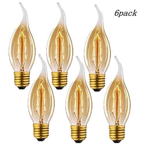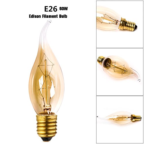 Chandelier Light Bulbs (60W 110V 280 Lumen) Bent Flame Tip Vintage Incandescent Light Bulb Antique with The E26 Candelabra Base For Home Light Fixtures Decorative, Dimmable-6-pack, E26/E27 Base