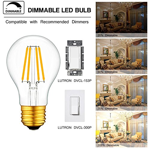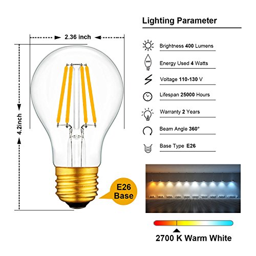 Vintage Edison LED Light Bulb A19 2700K Warm White E26 Base Dimmable 4W Equivalent 40W ( Pack of 6)