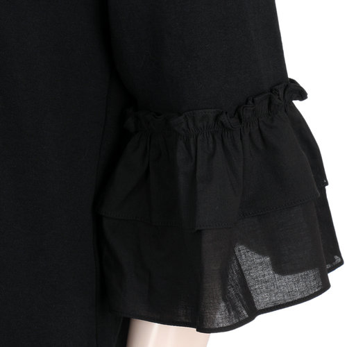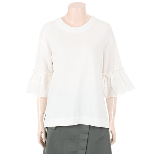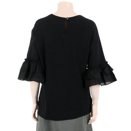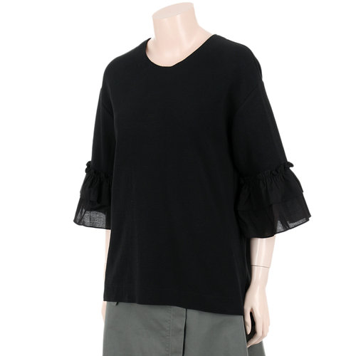소매 끝단의 러플 디테일이 사랑스러운 티셔츠입니다.