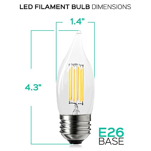 - BRILLIANT COLOR - Gain vibrant lighting and uniformity similar to a natural light source with each filament bulb LED. These flame shaped edison LED light bulbs are ideal for chandeliers, sconces, lanterns, pendants, decorative indoor fixtures, or any aspect of your home with an E26 medium base socket that needs quality lighting.