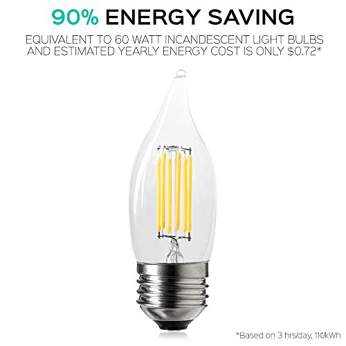 - INSTANT SAVINGS - Cut down 90% of your electricty usage by switching your 60 watt incandescent filament light bulb with a 6 watt LED chandelier light bulb. Immediately trim the cost of your electricty bill by making the investment into energy saving lights.