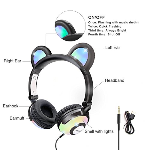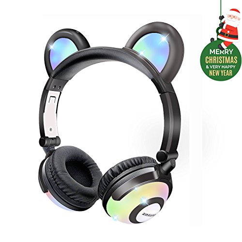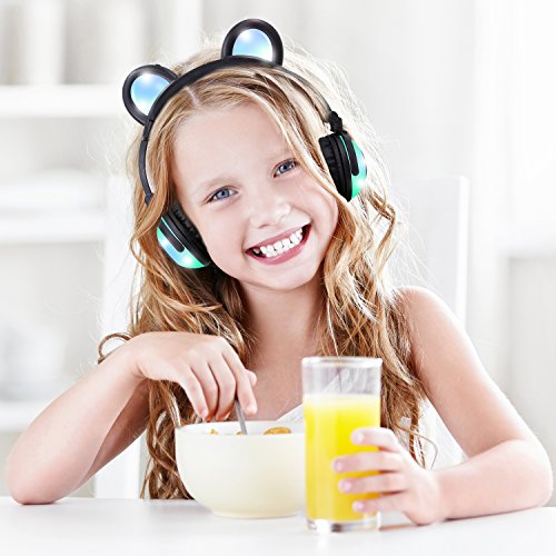 RioRand Kids Headphone, Foldable Ear Noise Cancelling flashing headphones for Kid Boys Girls (Black)